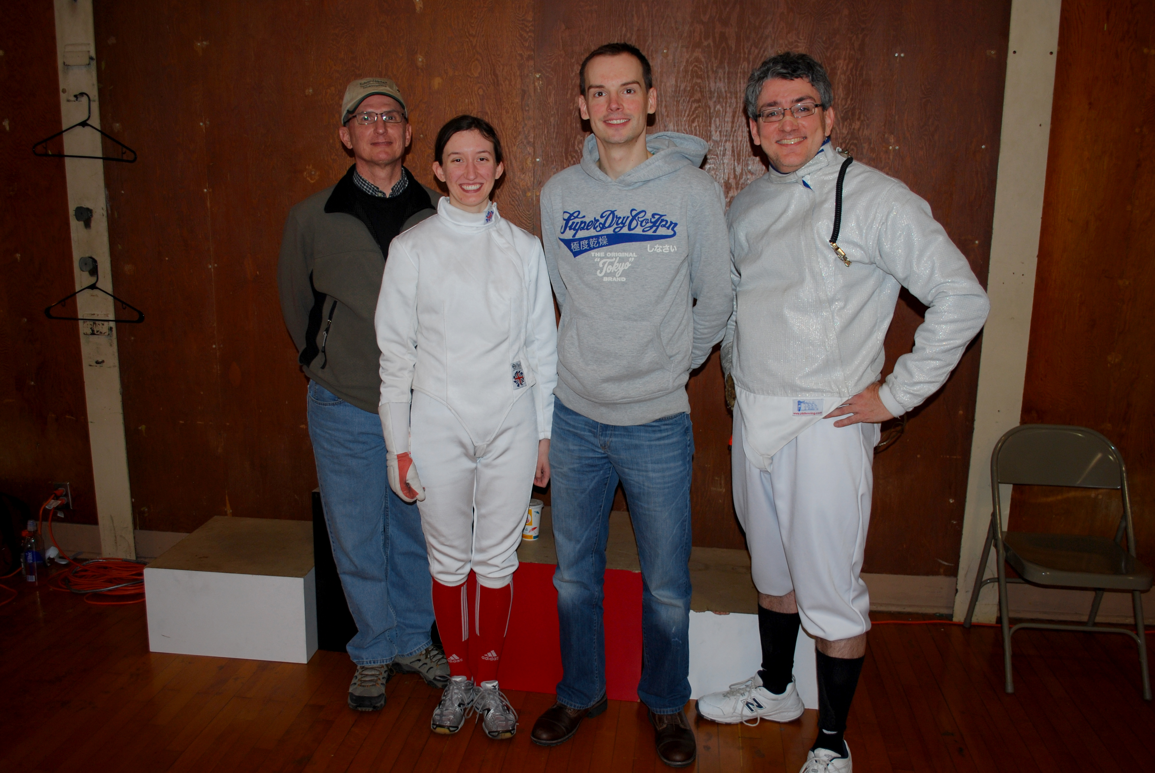Of 48 fencers in mixed epee, Jim Musgrave placed 10th, Sarah Timmons Powell placed 16th, and Mike Timmons placed 23rd. Sarah was also 2nd of 15 in women’s epee.