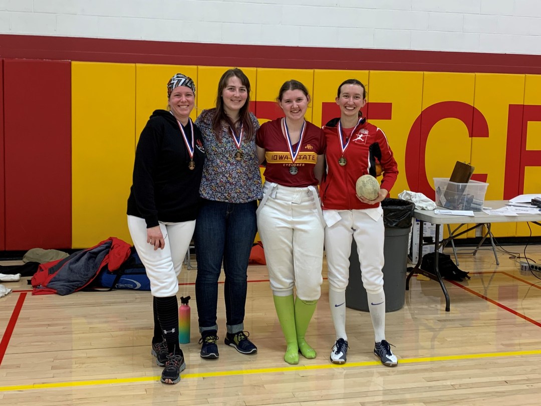 Yesterday, four of our fencers competed at Iowa State University Fencing Club’s Cantaloupe Open. In Mixed Epee, Daniel took 8th place, Sarah was 9th, Weston came in 23rd, and Jazz finished 25th at his first senior age category event. Sarah also won Women’s Epee and a cantaloupe!