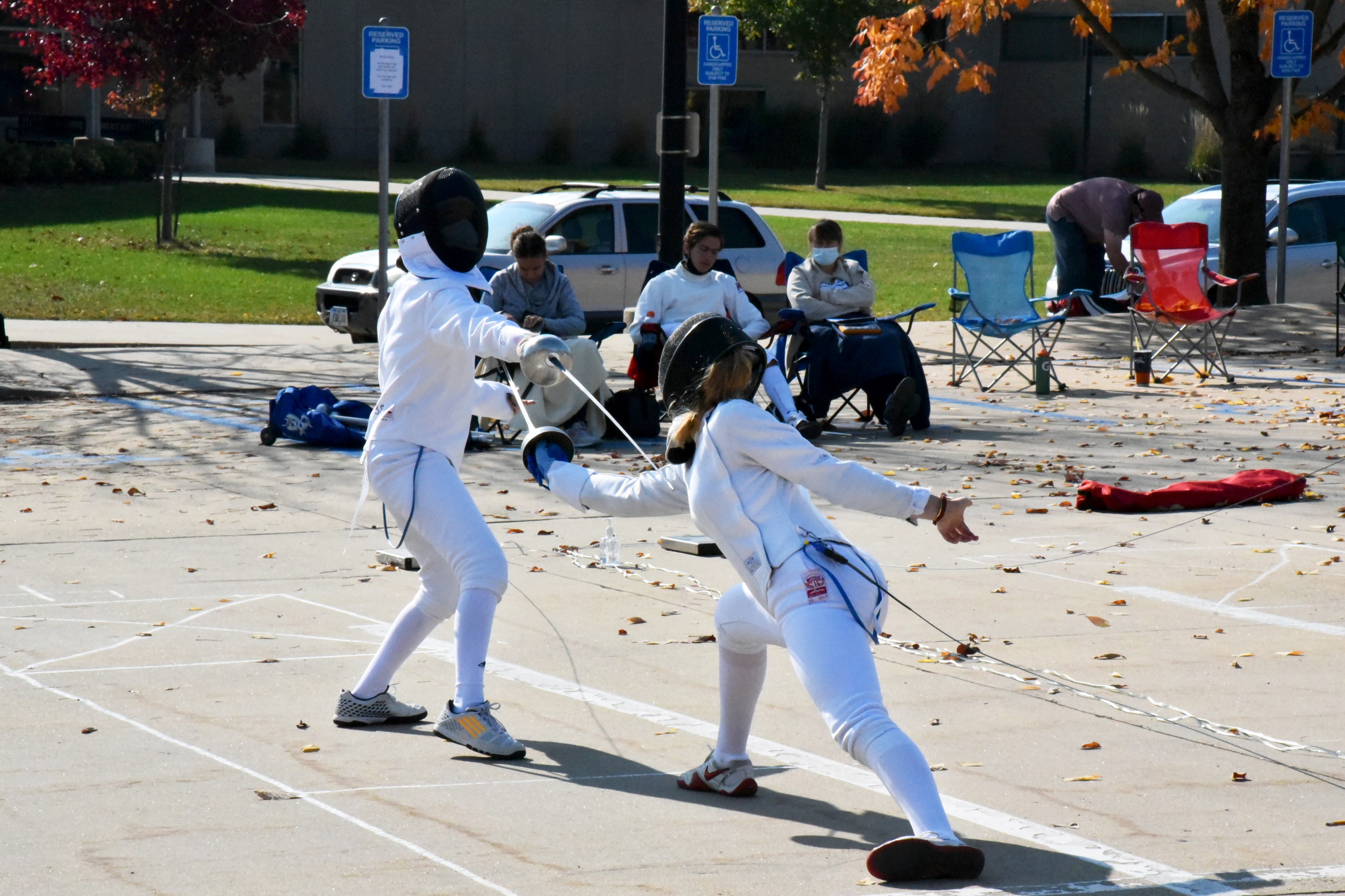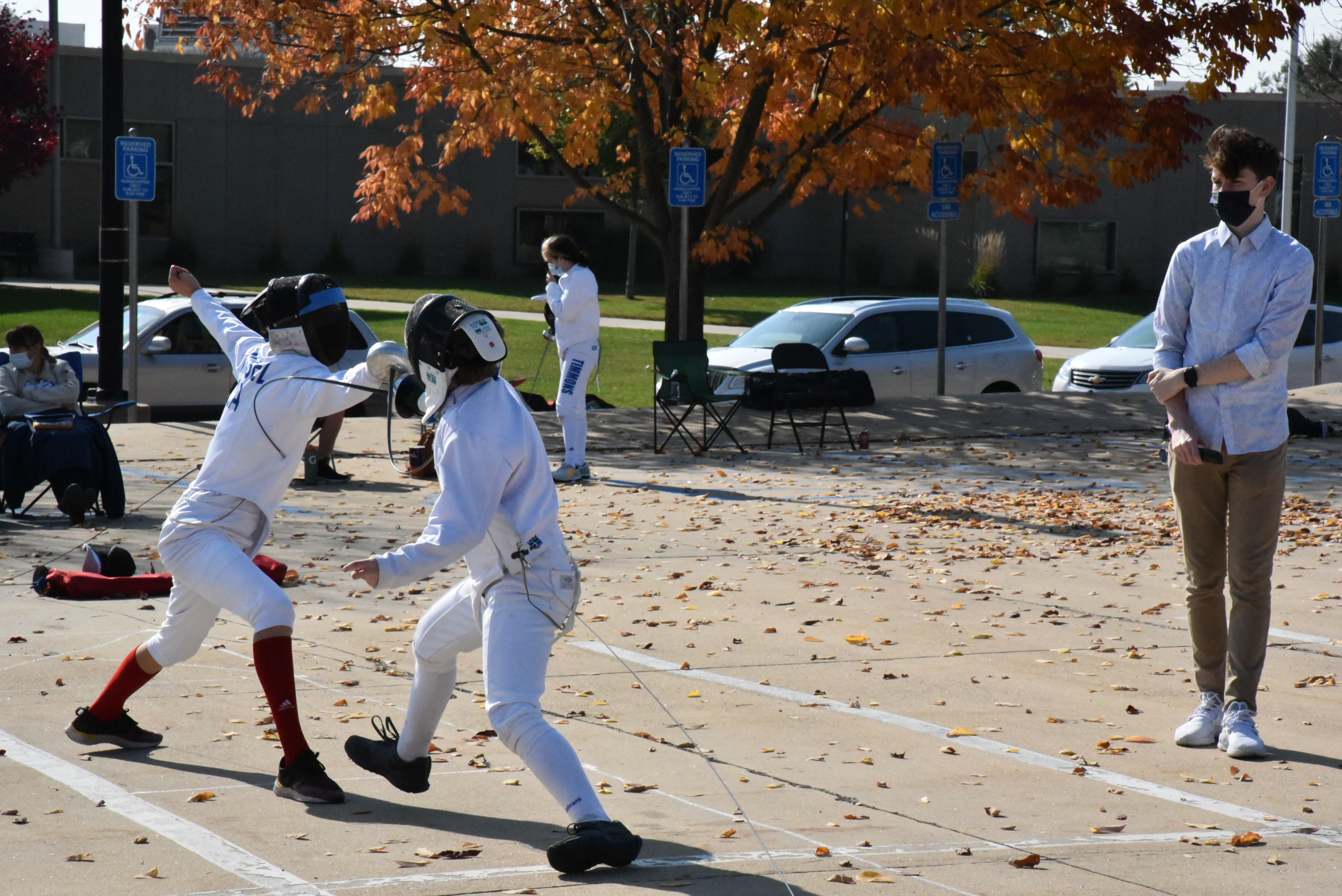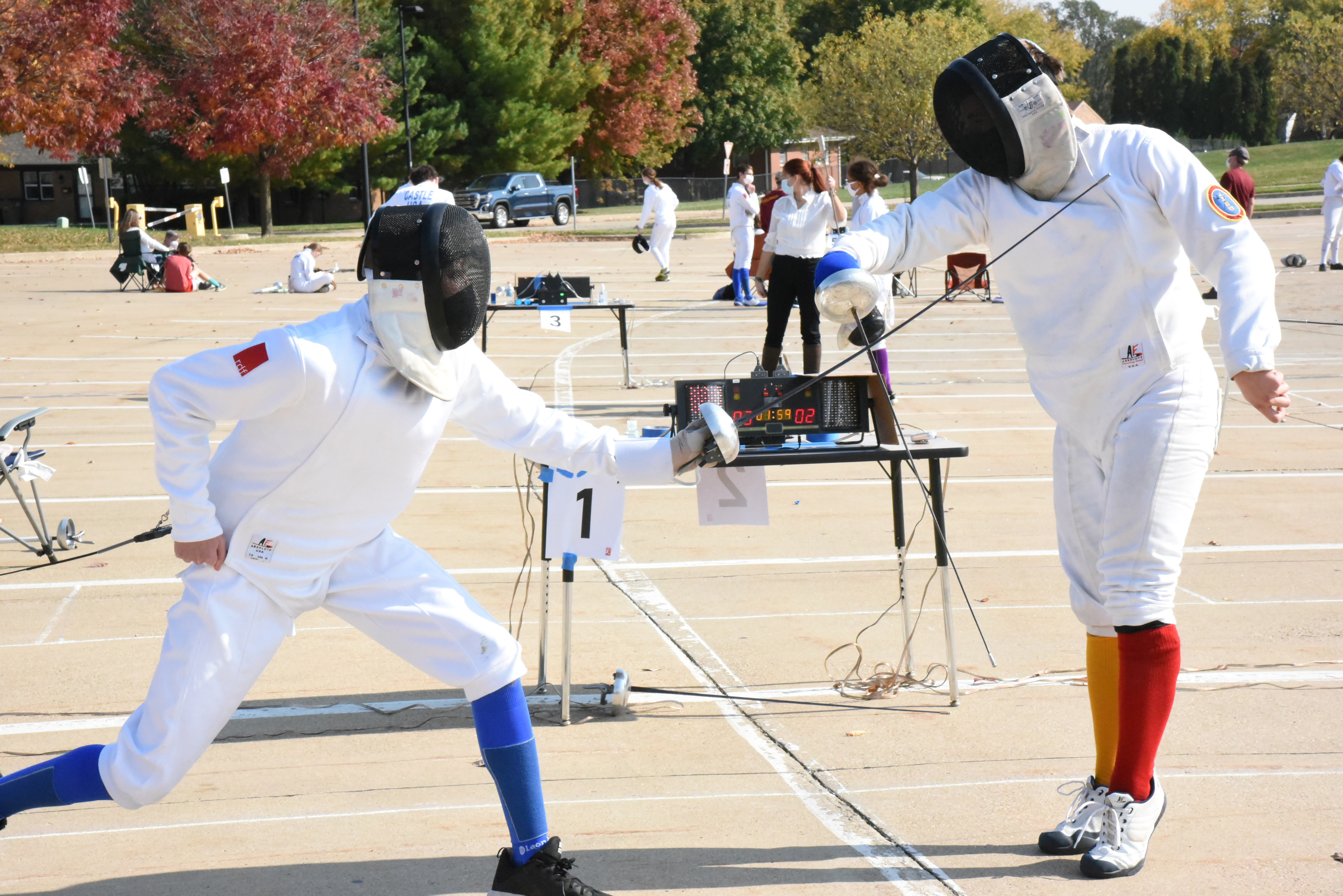 We finally got to have our (now not accurately named) Equinox Epee tournament the second weekend of October! It was a little smaller than usual, with 30 individual fencers participating in 4 events, but everyone was grateful for a chance to compete even though the circumstances were less-than-ideal. The tournament was held outdoors in the parking lot at Hillside Elementary, and everyone did a great job wearing their masks, keeping their distance from others, and not shaking hands! Thank you to everyone who helped make this event possible!