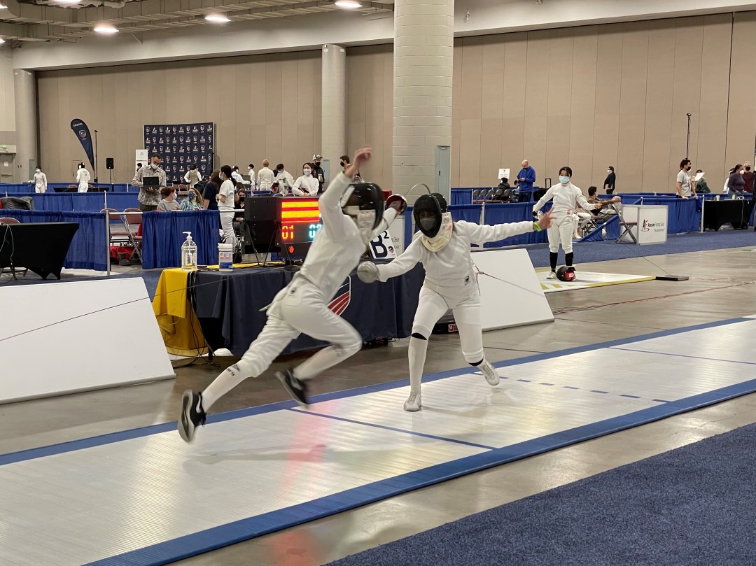 RDF fencer Ava traveled to Salt Lake City, UT to compete at Junior Olympics, which is national championships for the Junior and Cadet age divisions. In Cadet Women’s Epee on Monday, she finished 157th and made some great touches. She was pleased by her improving ability to emotionally recover from a loss, and some things she’s been working on in practice came together in competition, which is always a good feeling for a fencer!