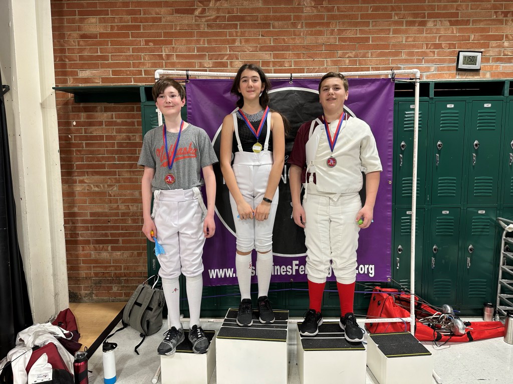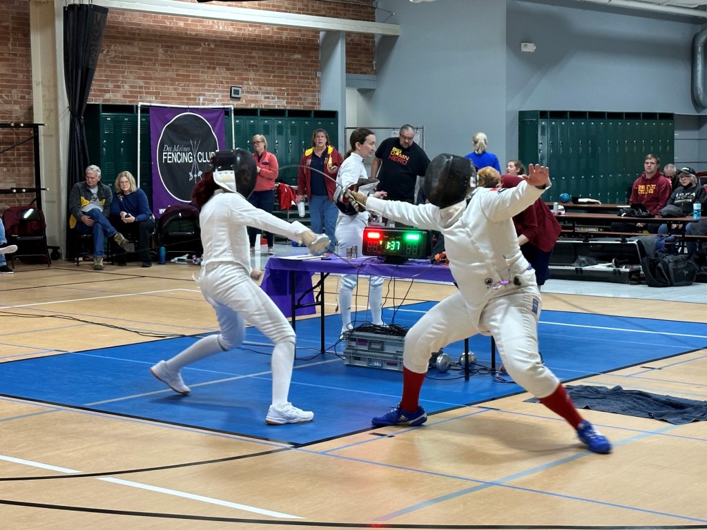 The Duel in Des Moines was this weekend and RDF sent 12 fencers to compete in 3 events! Everyone got some good touches (points) and has things to be proud of! It was the first tournament for Jackson and Kai, and Sarah earned her C23 rating. We had a lot of fun fencing our friends from Nebraska and Iowa City! Thanks to DMFC for hosting!