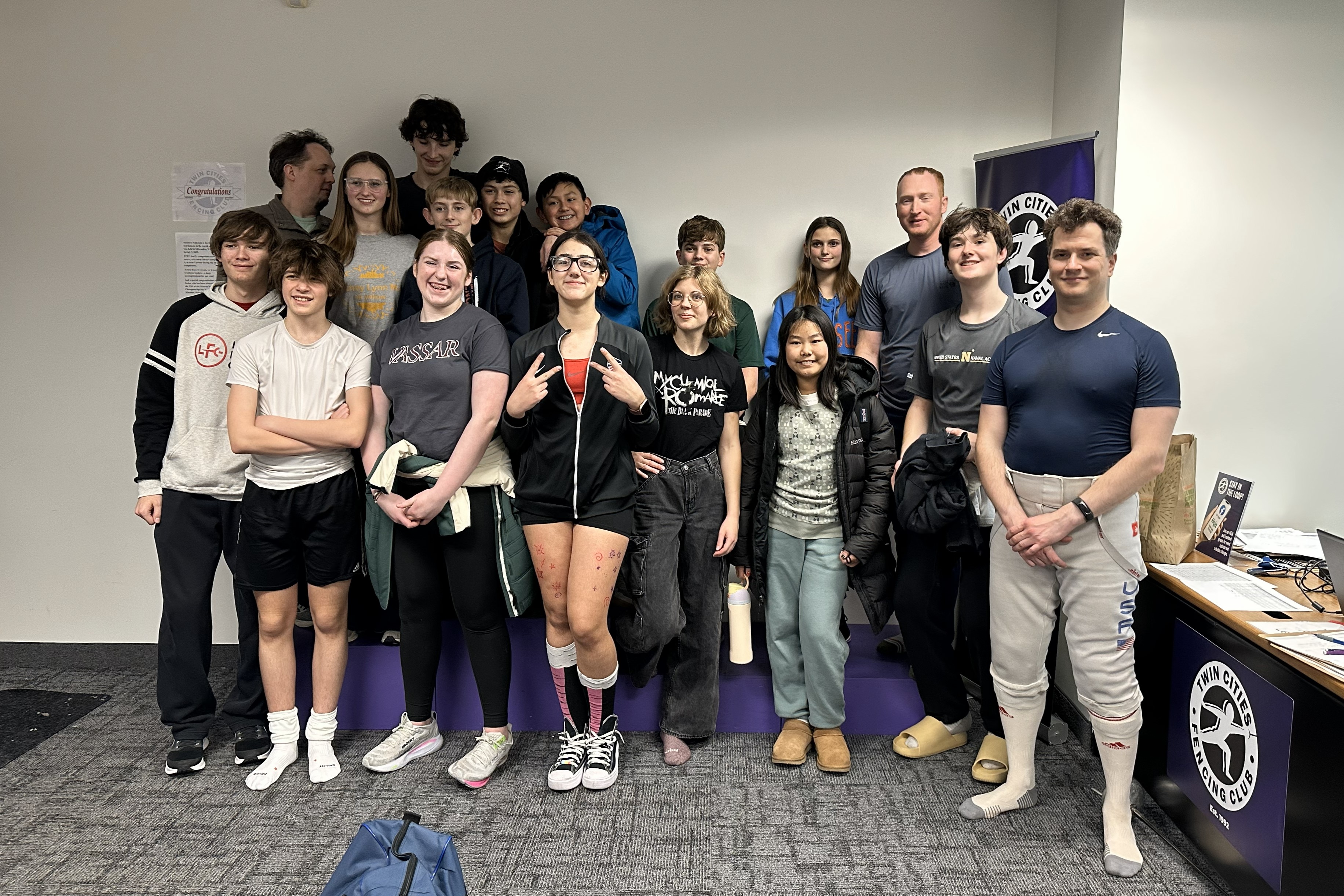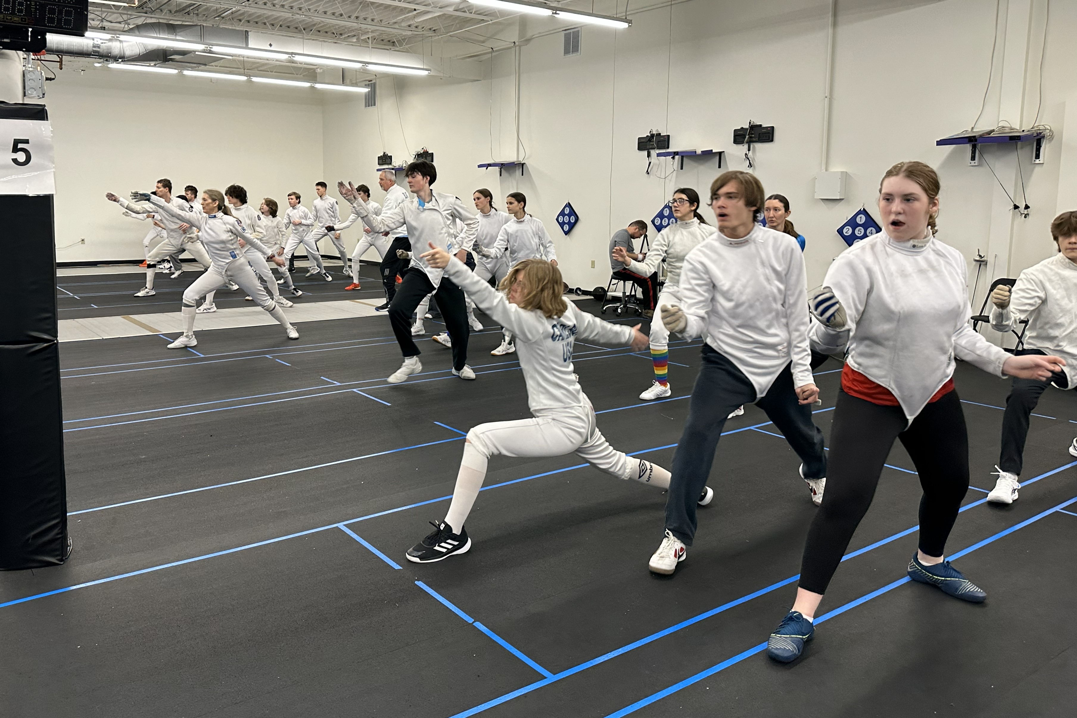 Javy, James, Tristan, Kalina, and Ava worked hard and had fun over 4 days in St. Paul over Winter Break. We stayed in a huge old airbnb with our friends from Lincoln and Kansas City, where we cooked and ate some delicious and spicy food, played “sardines”, PS2 and arcade games, card games, and the piano (with singing… for 2.5 hours one evening – wow!), and presumably slept at some point. After singing our way to the club each morning, we warmed up, worked on footwork, suited up and started on drills, had a lunch break, then continued working on the drills and fencing in the afternoon. We enjoyed the team tournament at the end and saw improvements from all our fencers! We’d like to thank all the families and coaches, especially our hosts at the Twin Cities Fencing Club Scott and Sasha, Gary from Northern Colorado Fencers, and Brad from Lincoln Fencing Club, and all of the people we got to fence with, for making this fantastic experience possible!