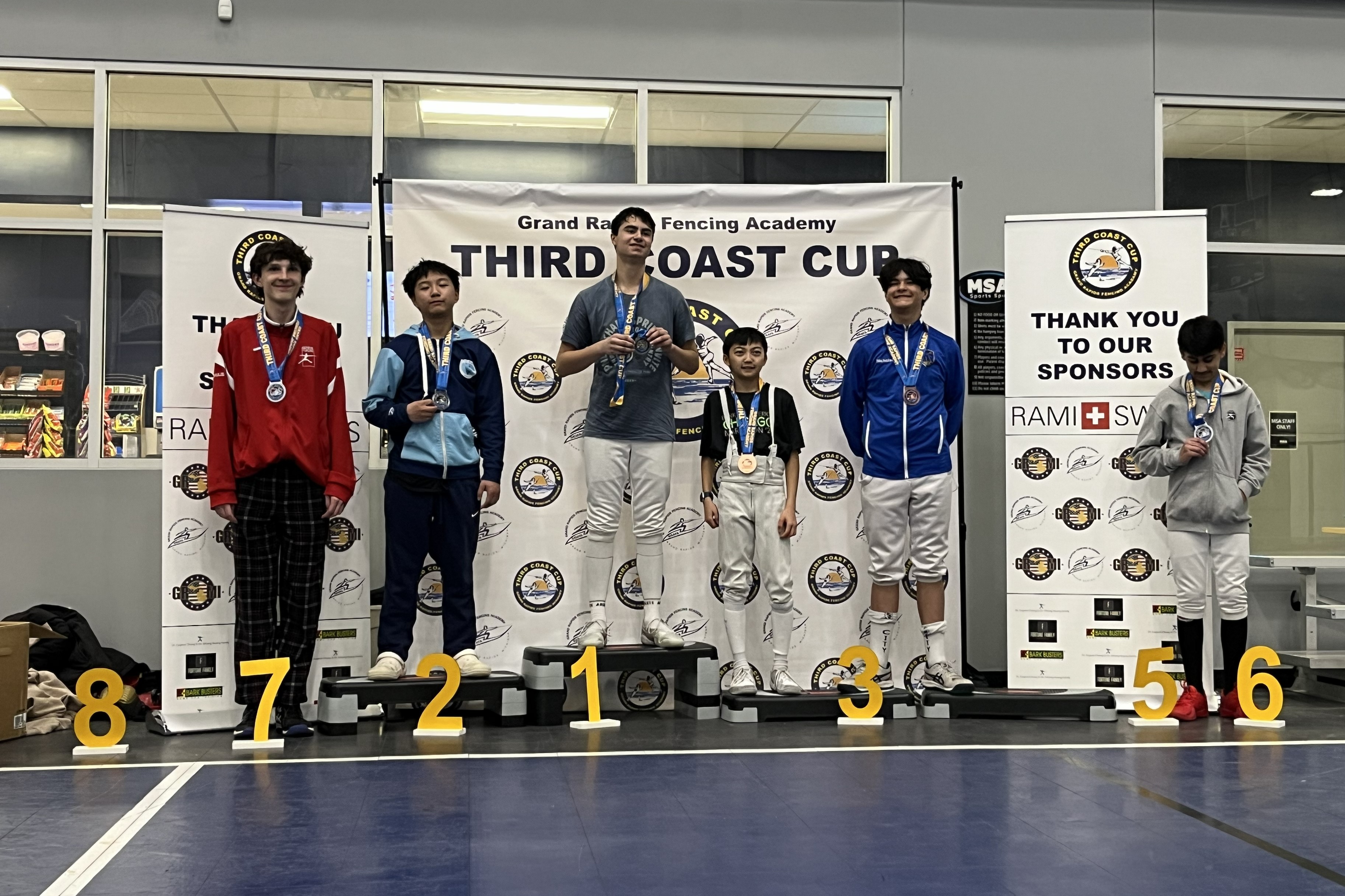 Tristan was busy with 4 events in 2 days, winning a pool bout and finishing 27th in JR Men’s Epee as one of the 2 youngest fencers in the event. He ended 21st in Cadet ME. He then won Division 3 ME in a close match with an opponent he struggled with in pools, and earned his D26 rating! He did a particularly good job being patient and smart in a situation where a lot of kids might have lost focus, plus he got some good advice from a friend from Center for Blade Arts. Finally, he took home the 7th place medal in Y14 ME!