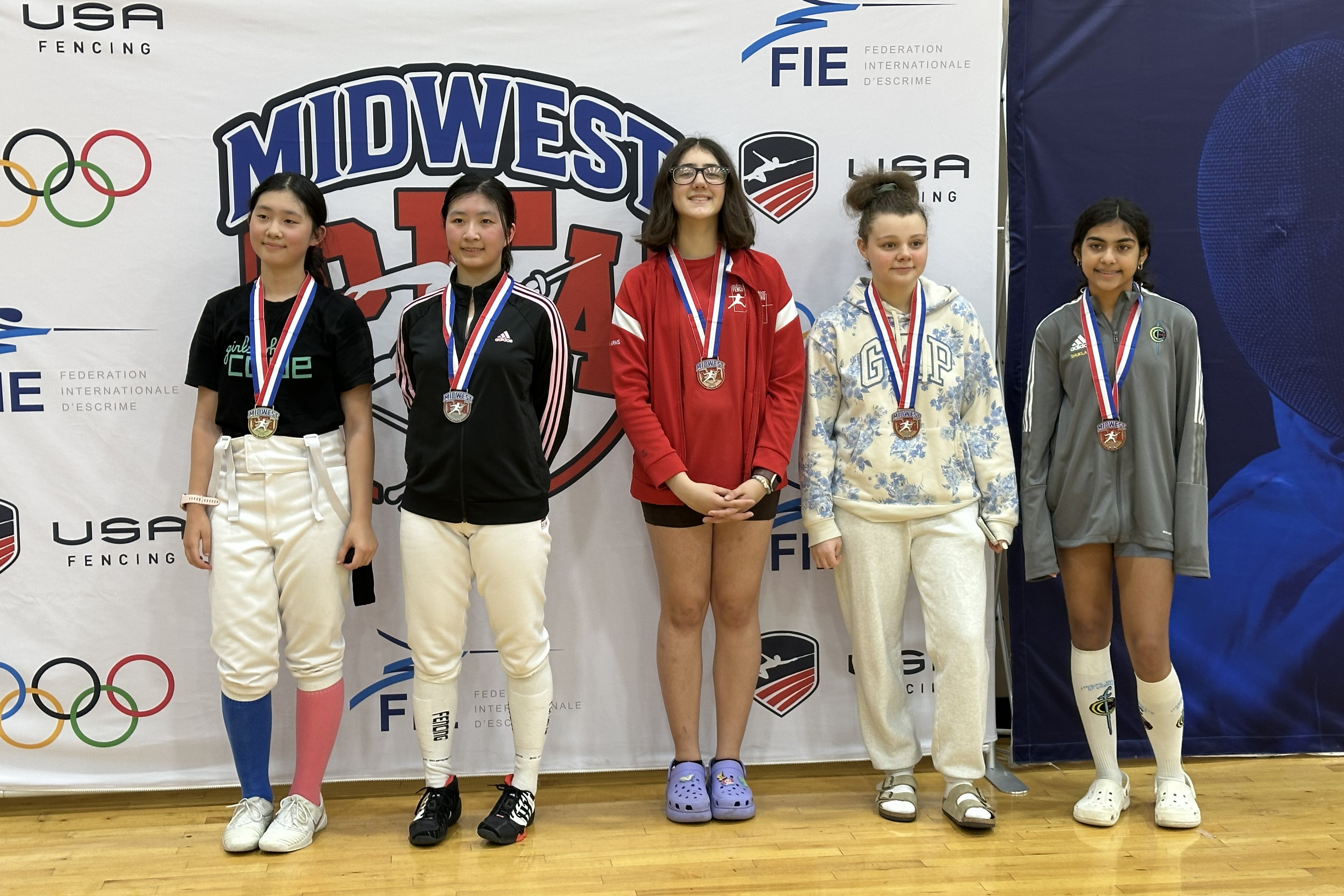 The first weekend of April, Tristan and Kalina went back to the Chicago suburbs for the Midwest RYC/RJCC tournament. Tristan finished 18th in Y14 Men’s Epee, in 2nd in Cadet, and 9th in Junior. Kalina won the gold medal in Y14 Women’s Epee and tied for 3rd in both Cadet and Junior. Nice fencing, folks!