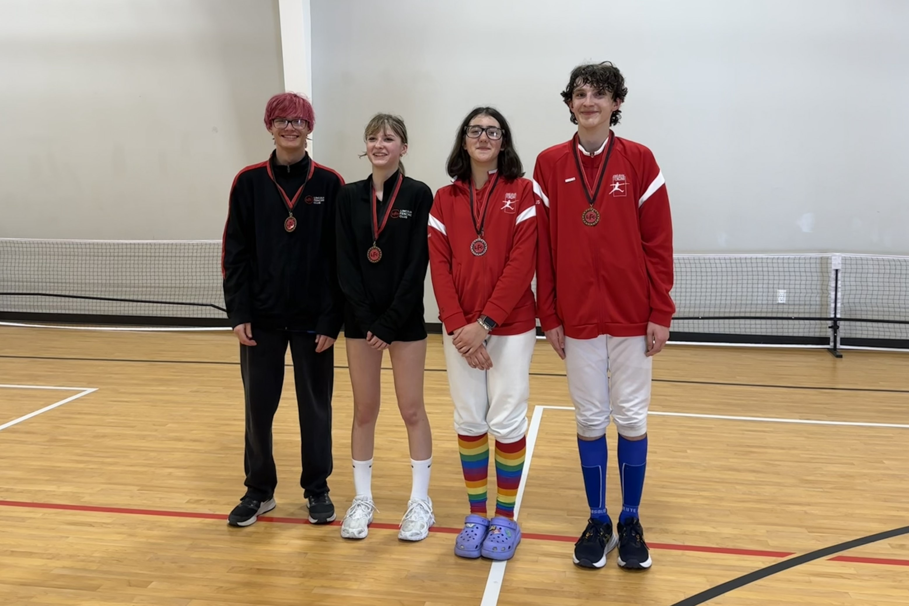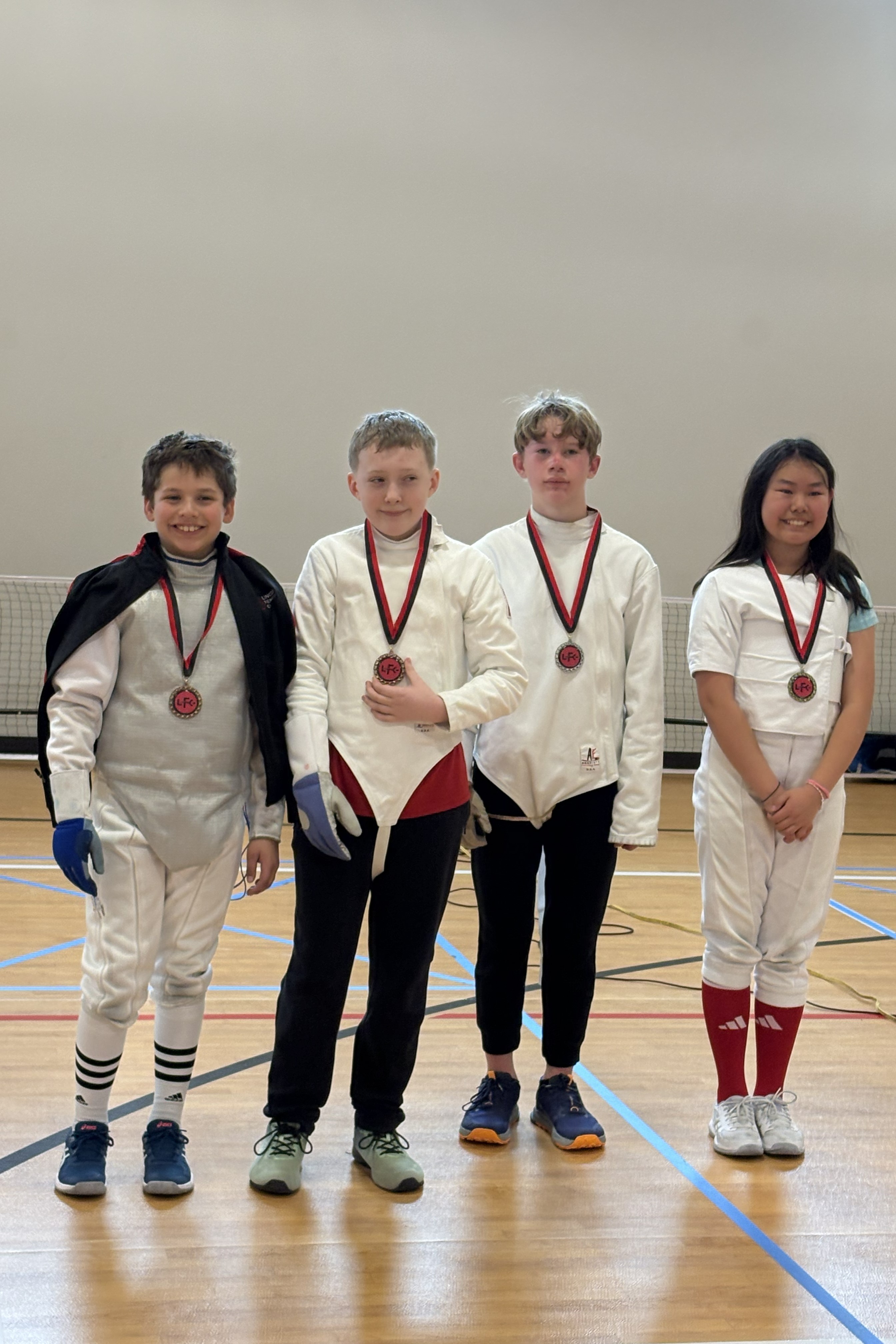 In Y12/Y10 Mixed Epee, Robert tied for 3rd. In Y14 Mixed Epee, Tristan won the gold medal, Kalina took silver, Liam finished 5th, James G. was 9th, James L. (the 2nd) ended 11th, and Robert finished 12th. Robert also tied for 3rd in Y10/Y12 combined mixed foil, which is the only time he’s fenced foil EVER!