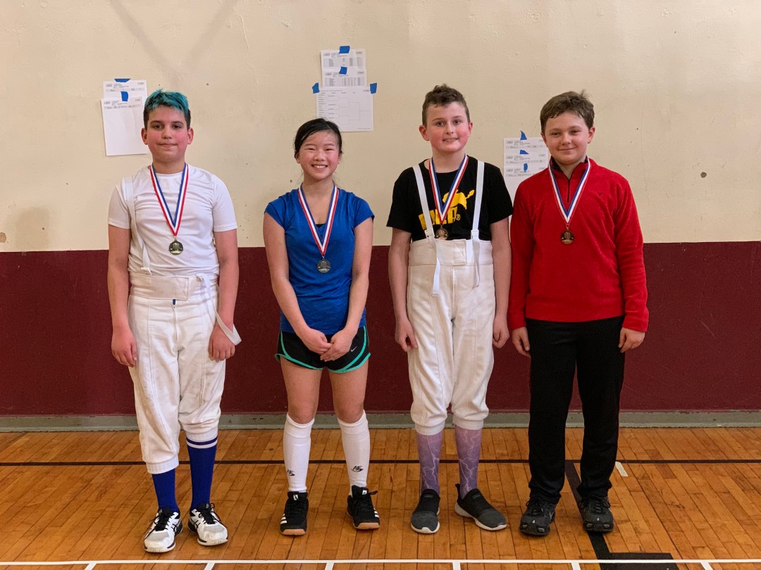 In Cadet Mixed Epee, Ava earned the gold after a close 15-13 match with Jack, who took home silver. In his first ever tournament, Ben placed 6th, and Campbell – in his first tournament outside the club – finished 7th.