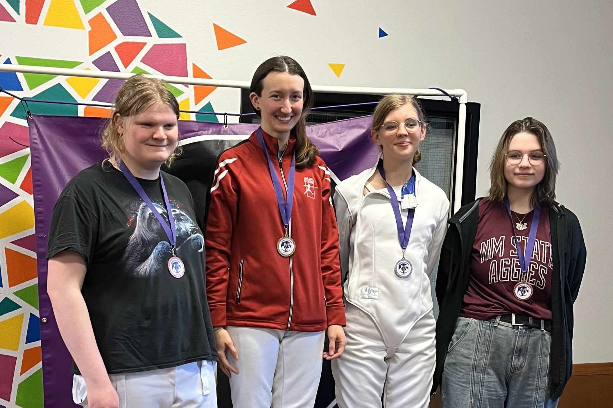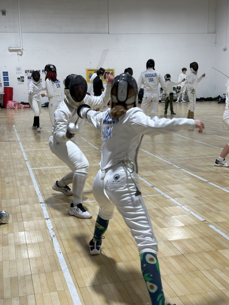 The temperature outside was frightful, but the fencing inside was delightful! The second Heartland Youth Circuit was a small event last weekend, but those that braved the weather all earned points toward the end-of-season placings. In Y10 Mixed Epee, Nora and Grant tied for 3rd, and Sam finished 5th. In Y12 Mixed Epee, James L. took home the goofy trophy for 1st. In Y14 Mixed Epee, Kalina was 1st, James L. took 2nd, Tristan tied for 3rd, Lucas was 6th, Robert finished 7th, and James G. ended 8th. Kalina also won Cadet Mixed Epee, with Tristan finishing 2nd, and Malakai tying for 3rd. In Junior Mixed Epee, Kalina was 1st, Tristan ended 2nd, Jack and Malakai tied for 3rd, and Liam finished 5th. It was also Nora, Sam, and James G’s first tournament! We also got to see our friends from Kansas City and Lincoln and make some new friends from Minnesota!