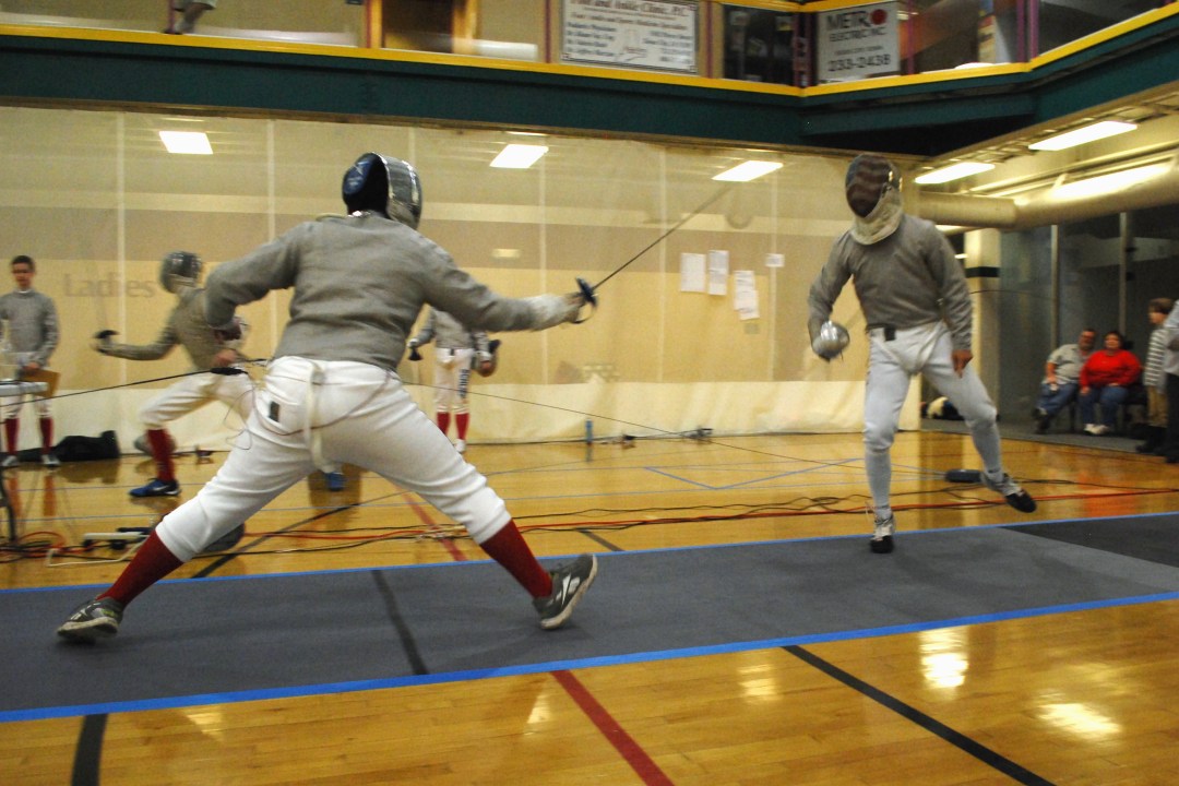 In Division 2 Women’s épée, Julia won two of her pools bouts and fenced hard against an experienced opponent in DEs. She finished 52nd, an excellent place for her first NAC. Sarah came out strong, and was third out of pools. She had a tough time focusing in her bout in the round of 32, so she ended 17th. Full results available here: http://results.usfencingresults.org/2014-2015/2014.12-DEC-NAC/FTEvent_2014Dec05_DV2WE.htm